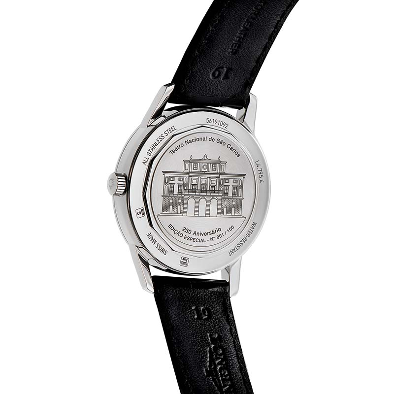 To celebrate 230 years of one of the most iconic places in Portuguese culture, Longines presents the Flagship Heritage 230 Years S. Carlos National Theatre commemorative edition. This is a special edition watch, numbered and limited to 100 pieces created exclusively for the Portuguese market and which contains, on the back of the case, the image of this monument with neoclassical characteristics of 18th century and Italian inspiration.