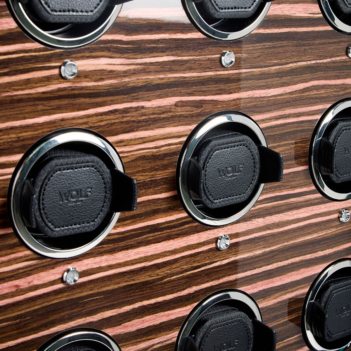 Desde 1834 que a Wolf desenvolve soluções para conservar peças de relojoaria com um cuidado quase museológico. Mas o que a distingue vai além do artesanato refinado ou dos acabamentos nobres em pele e madeira: a marca detém uma tecnologia patenteada que mede as rotações reais dos seus rotores, ao contrário de outros sistemas baseados apenas em estimativas de tempo. Este detalhe é essencial para manter a integridade mecânica de relógios automáticos, garantindo que cada movimento seja fiel ao seu ritmo original.