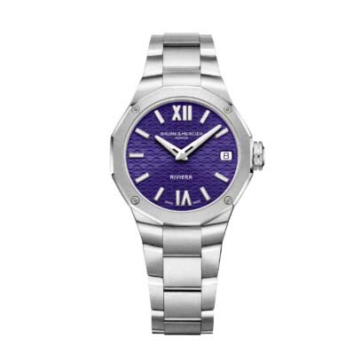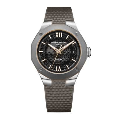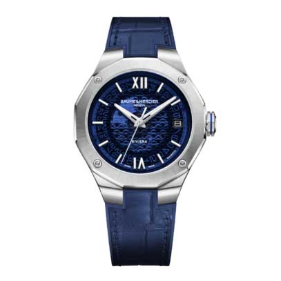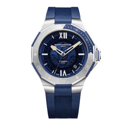 A Baume & Mercier apresenta dois novos relógios de mergulho na colecção Riviera com um novo e exclusivo design para a luneta de mergulho unidireccional. Os anteriores relógios de mergulho desta família eram modelos de 1981 com o mostrador e a luneta pretos. Este ano, a marca lança dois novos relógios dodecagonais de 42 mm em aço, com mostradores em vidro de safira azul fumado ou cinzento, com a característica decoração de onda da colecção e ponteiros de horas e minutos com formato especial revestidos a Super-LumiNova.
