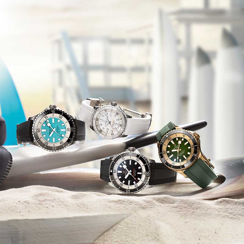 Depois de conquistar as estradas e os céus, a Breitling voltou a atenção para as profundezas do mar. Em 1957, a marca apresentou o Superocean. Concebido especificamente para mergulhadores, este relógio apresentava uma construção robusta, capacidades impressionantes de resistência à água e uma luneta rotativa unidireccional, crucial para medir com precisão os tempos de mergulho.