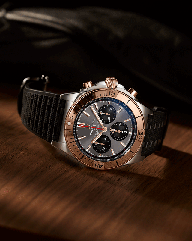 Disponível numa variedade de materiais, desde o aço ao ouro vermelho, o novo Chronomat apresenta uma caixa de 42 mm e a icónica luneta com quatro patilhas. O relógio oferece uma gama de mostradores coloridos e é combinado com a bracelete "Rouleaux" de assinatura em metal ou borracha, proporcionando tanto elegância como conforto. Alimentado pelo Calibre de manufatura Breitling 01, um cronómetro certificado pelo COSC, este relógio assegura precisão e desempenho excecionais, consolidando o Chronomat como um símbolo de qualidade e inovação no universo da relojoaria.