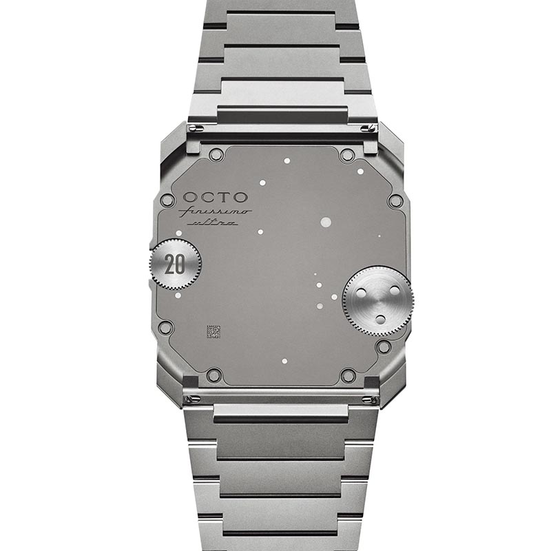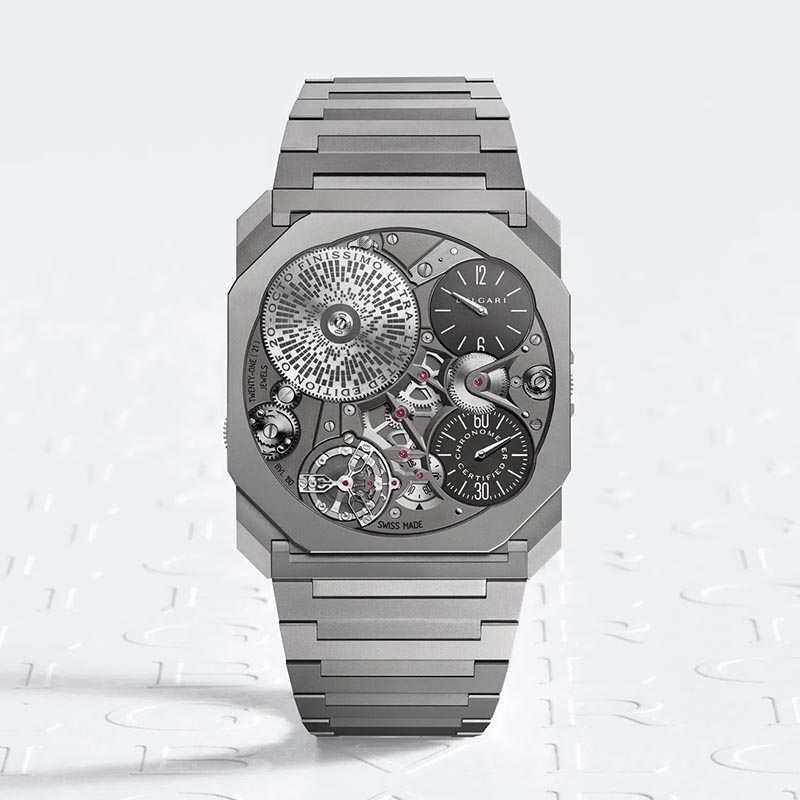 Limited to just 20 pieces in titanium or platinum, the new Bulgari Octo Finissimo Ultra COSC is not only the world's thinnest mechanical watch, but also the world's thinnest COSC-certified chronometer. At 1.70 mm thick, this model is 0.1 mm thinner than the previous Octo Finissimo Ultra, despite using the same BVL180 calibre. To save this tenth of a millimetre, Bulgari redesigned the sapphire crystal.