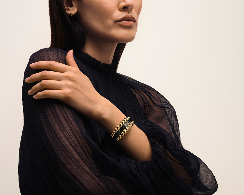 A Cartier dá continuidade ao seu legado de fusão entre relojoaria e joalharia com o Tressage. Este novo modelo, inspirado nas linhas do Maillon e do Coussin, destaca-se pelo trabalho artesanal sofisticado, onde o ouro e os diamantes se entrelaçam numa composição tridimensional. O mostrador, adornado com pavé de diamantes, surge rodeado por torções de ouro e pedras preciosas, criando uma peça de rara exuberância.
