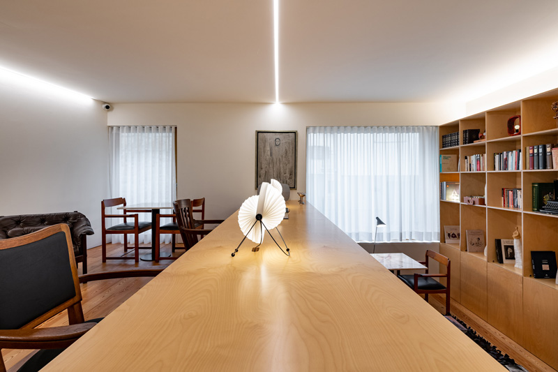 Na sala de estar a lareira crepita e pede que paremos a olhar para o fogo enquanto não chega a hora do jantar. Outra opção é escolher um dos livros da biblioteca, coleção privada dos proprietários que está à disposição, e ler só pelo prazer de o fazer. Num recanto, uma cúpula que parece um ninho para que o leitor faça a sua imersão na leitura. A verdade é que funciona.