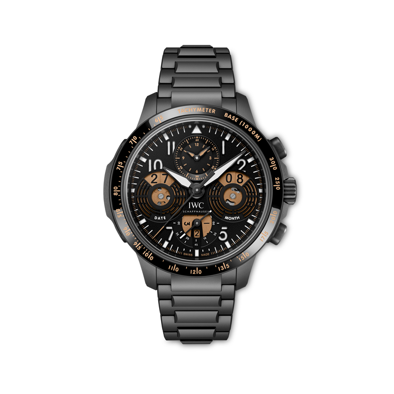 A IWC apresenta ainda o Pilot Performance Chronograph Perpetual Calendar Digital Date-Month, um modelo inovador que combina um calendário perpétuo com um cronógrafo de alto desempenho. Com caixa e bracelete em Ceratanium®, este relógio apresenta um mostrador preto texturizado com indicadores digitais dourados para a data e o mês. Equipado com o calibre IWC 89802, oferece uma reserva de marcha de 68 horas e uma engenharia altamente sofisticada, visível através do fundo em safira fumada.