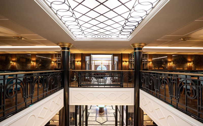A decoração ficou a cargo do consagrado atelier Oitoemponto, de Artur Miranda e Jacques Bec, que soube reinterpretar o glamour da Belle Époque com um toque de conforto contemporâneo. Mármore português, alcatifas desenhadas à medida, espelhos exuberantes, ferro forjado e peças garimpadas em antiquários compõem um cenário que faz lembrar uma carruagem do Orient Express. Luxo, aqui, não é ostentação, é subtileza, harmonia, atmosfera.