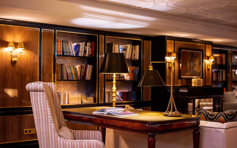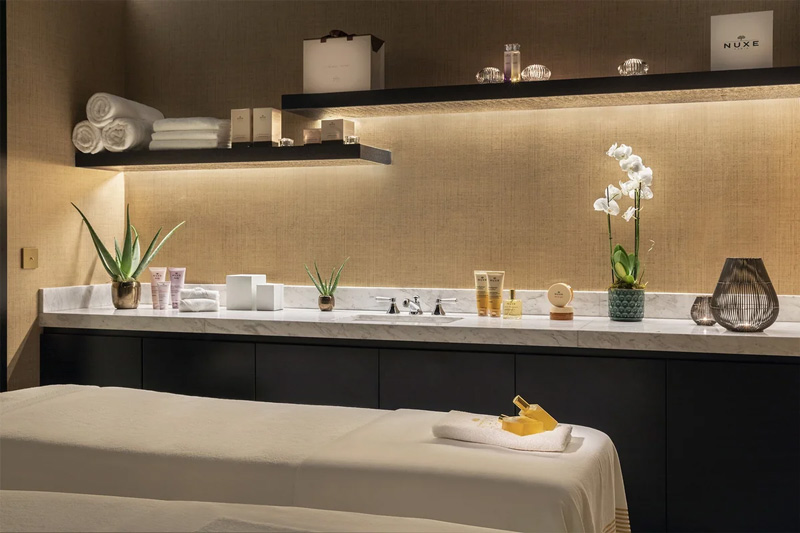 Nos espaços comuns, o hotel reforça o seu estatuto de refúgio urbano com biblioteca, lounge, ginásio e um dos seus trunfos mais exclusivos: o Spa Grand Bleu by Nuxe. Primeiro spa da prestigiada marca francesa Nuxe em Portugal, é também o único localizado num hotel no centro histórico do Porto. A experiência sensorial inclui piscina interior aquecida, sauna, banho turco, salas de tratamento e duche Vichy — tudo envolto num cenário sofisticado, propício à introspecção e ao bem-estar absoluto.