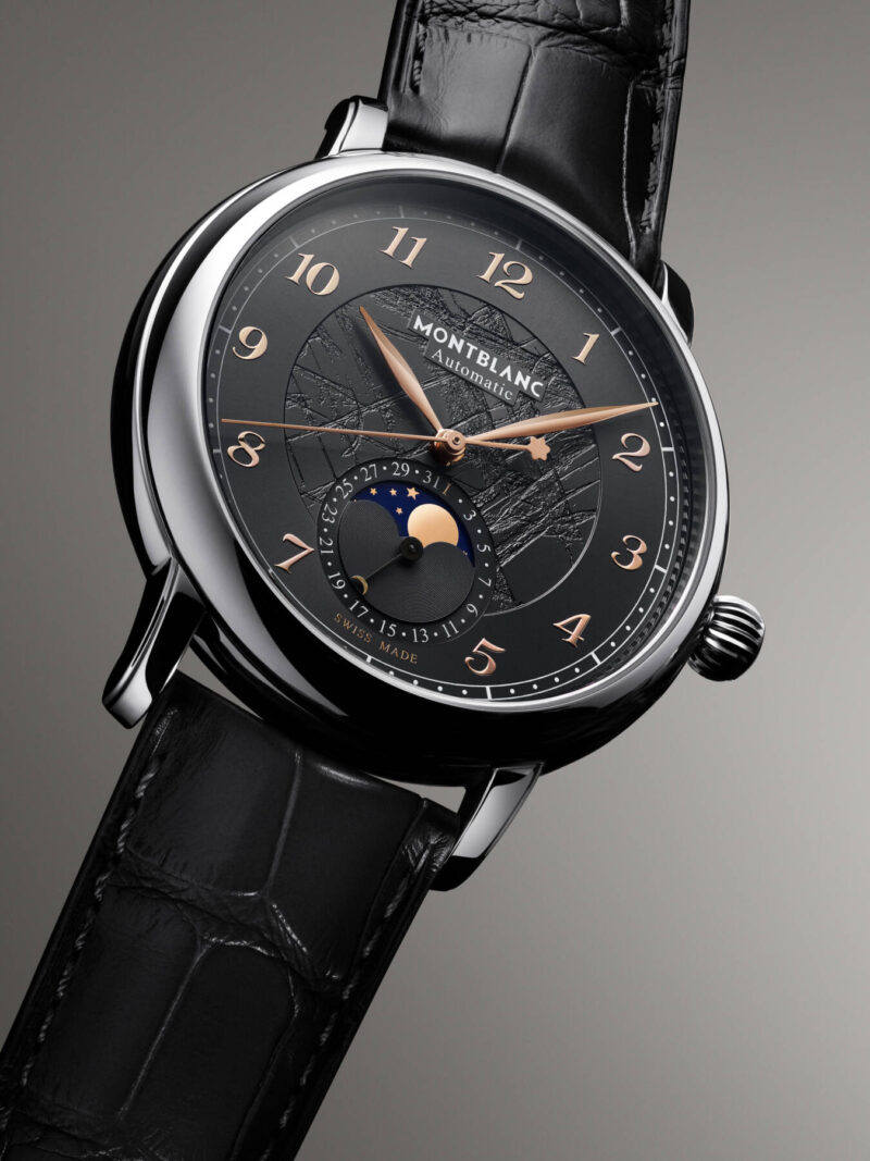 O novo Montblanc Star Legacy Fases da Lua é limitado a 1786 peças e está disponível numa caixa de 42 mm em aço que emoldura um mostrador cinzento. O novo modelo destaca uma nova faceta do Mont Blanc: o lado rochoso voltado para sul, onde a neve tem dificuldade em assentar na face vertical.