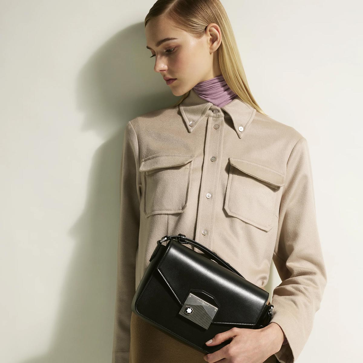 The iconic Montblanc Meisterstück writing instrument and its unmistakable design codes continue to inspire the eponymous collections in shiny, smooth leather.