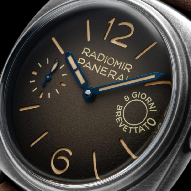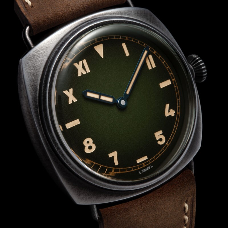 Para atender aos exigentes requisitos militares, a família Panerai melhorou continuamente o modelo original, introduzindo elementos que incluem o agora icónico mostrador em sanduíche, para tornar os índices horários e números ainda mais legíveis e luminescentes.