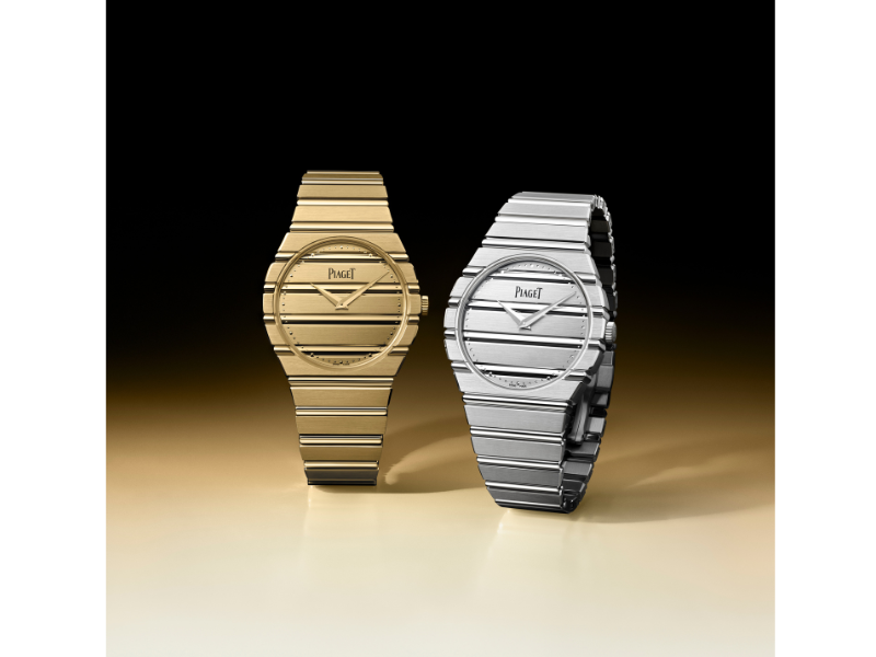 Em 1979, a Piaget criou o Polo 79, símbolo de um novo luxo casual. Este ícone regressa em 2025 com um visual reimaginado em ouro branco, mantendo os frisos alternados — polidos e acetinados — e a integração harmoniosa entre caixa e bracelete.