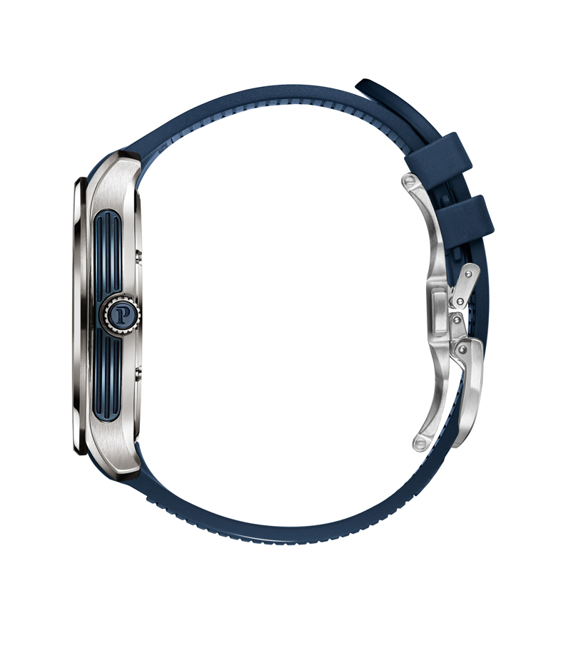 Desde o seu lançamento em 1979, a colecção Piaget Polo personifica o conceito de sport-chic, e este novo modelo reforça essa identidade com um design refinado e um avanço técnico notável. A caixa em titânio de 44 mm, combinando acabamentos polidos e acetinados, proporciona leveza e resistência incomparáveis. O mostrador azul profundo, cor emblemática da Maison, confere um toque de distinção, enquanto os godrons, característicos da linha Polo, acrescentam dinamismo ao design.