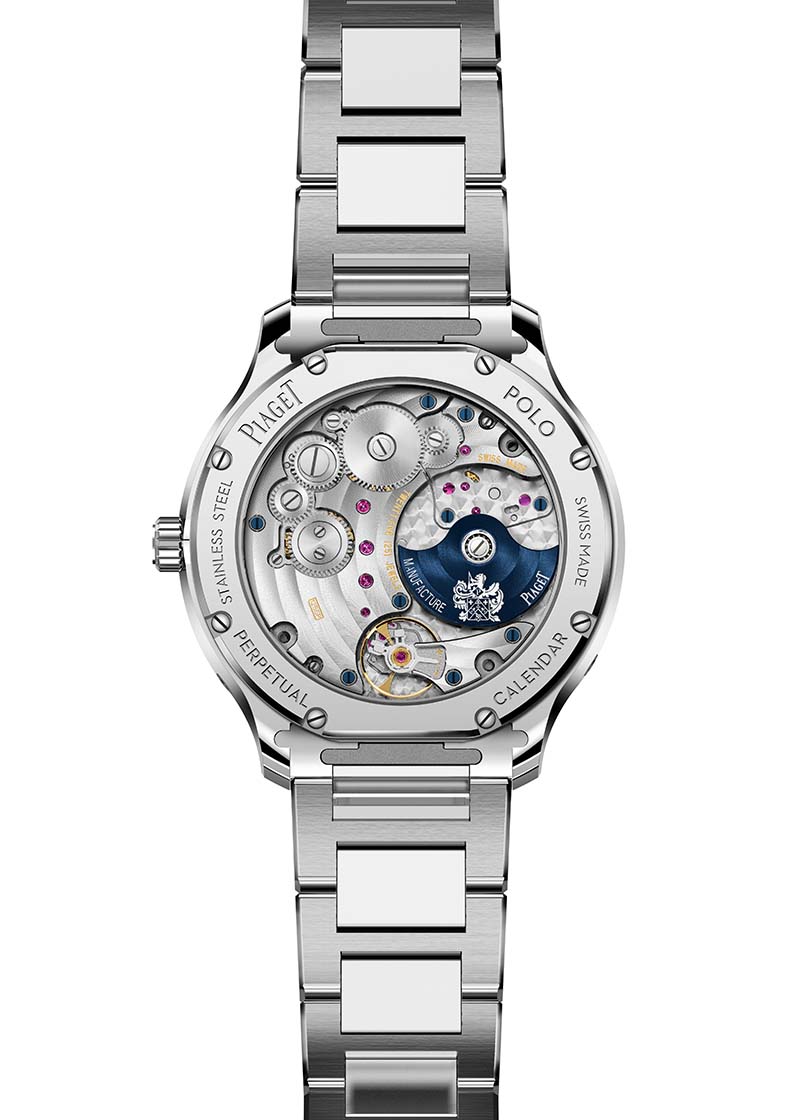 With a brushed and polished finish, the case of the new Polo features a transparent sapphire crystal caseback, through which it is possible to admire the Caliber 1255P automatic movement with micro-rotor. Beating at a frequency of 21,600 vibrations/hour and with a 42-hour power reserve, the new 1255P is based on the ultra-thin caliber 1200P, but with an additional perpetual calendar mechanism, which does not require any type of correction until 2100.