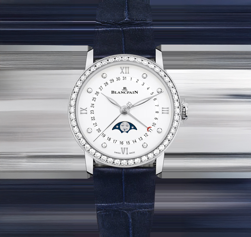 Este modelo une tradição e feminilidade, apresentando um mostrador elegante com indicação das fases da lua e diamantes na luneta. Uma peça sofisticada para celebrar o amor.