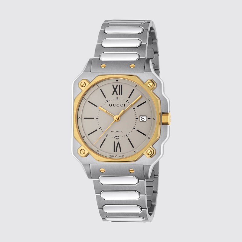 Para quem aprecia um estilo contemporâneo e minimalista, a colecção G-Flat da Gucci oferece modelos finos e elegantes, disponíveis em tamanhos de 24mm e 36mm, com mostradores limpos e braceletes sofisticadas.