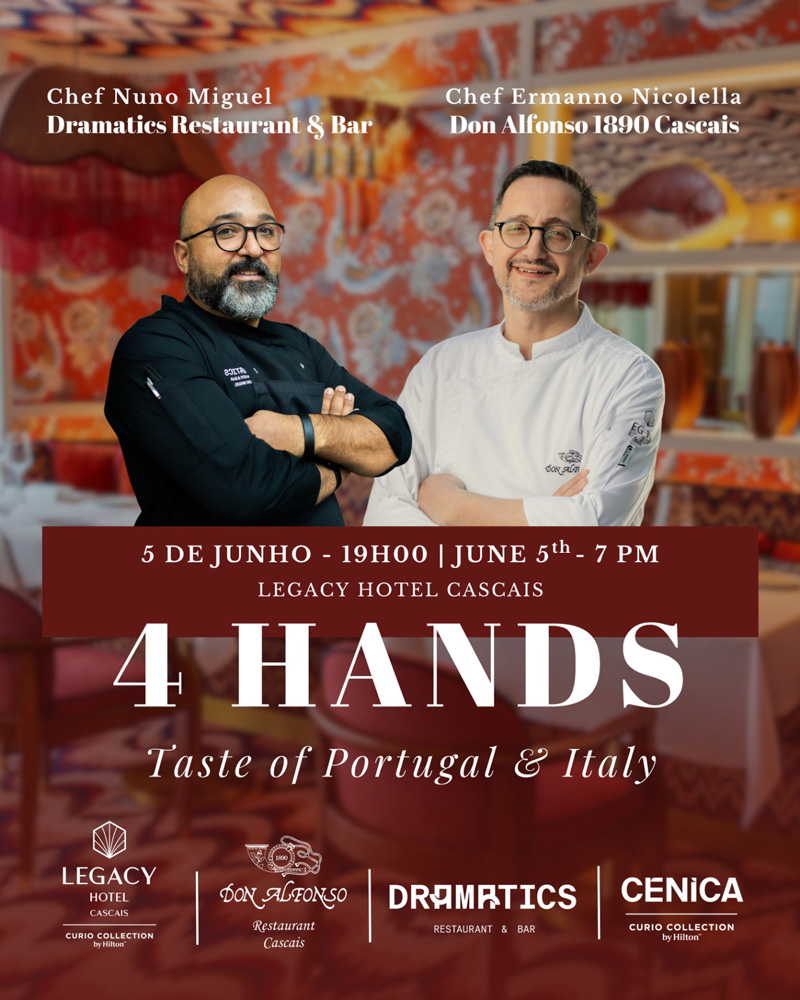 No próximo dia 5 de junho, o restaurante Don Alfonso 1890 Cascais, situado no Legacy Hotel Cascais, acolhe um evento gastronómico singular: um jantar exclusivo a quatro mãos, que promete uma viagem sensorial através das cozinhas de Itália e Portugal.