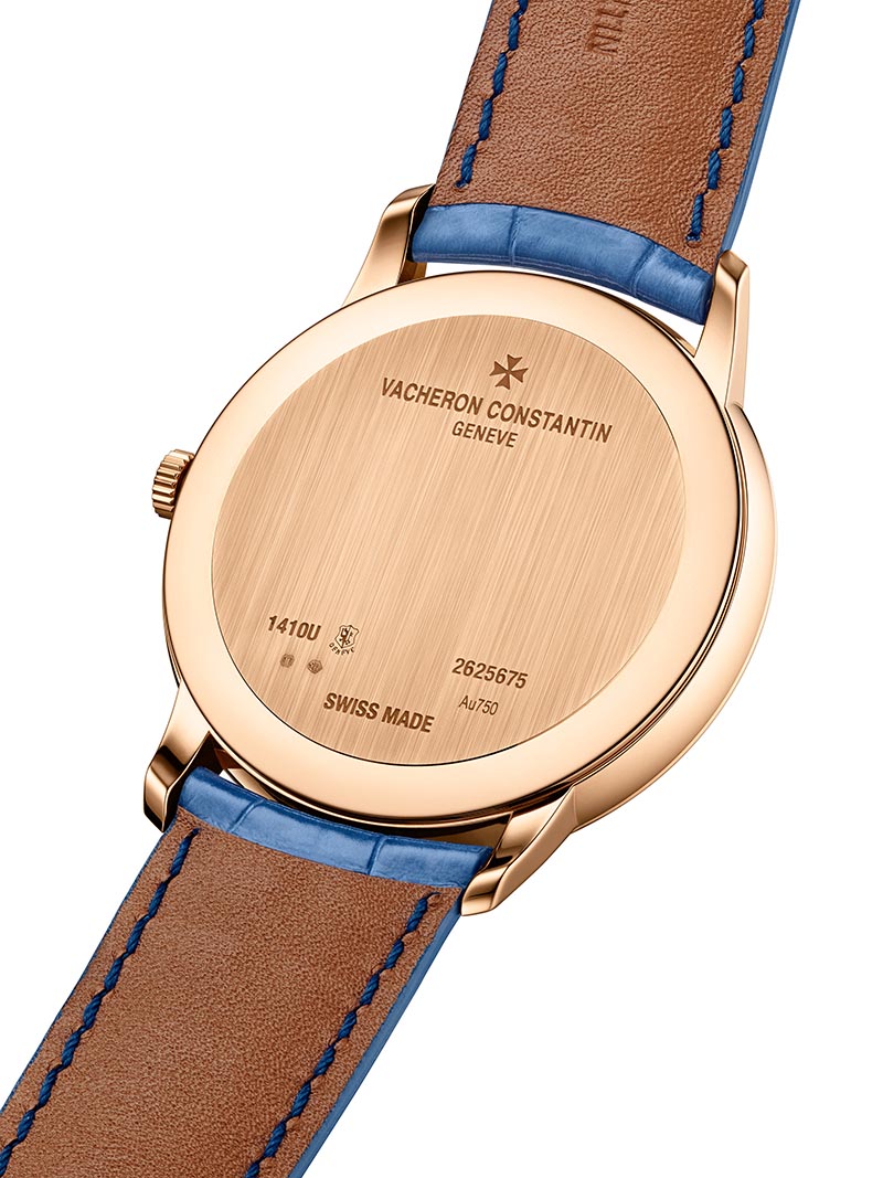 The Patrimony Hand-wound, available in white or rose gold, stands out for its aged silver dial, customizable caseback and bracelets in new colors such as sky blue or olive green. The Patrimony Moonphase and Retrograde Date comes in a white gold case, which frames the aged silver dial. The finishing touch is provided by an olive-green crocodile leather strap.