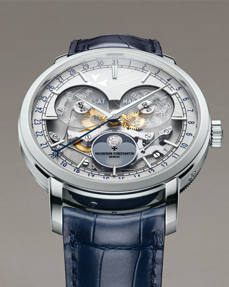 Novo calibre 2460 QPR31/270 com discos em safira e mostrador guilloché. Indicações completas do calendário, incluindo anos bissextos.