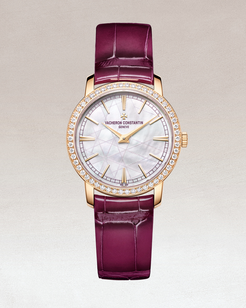 Com mostrador madrepérola rosa e calibre ultrafino, esta versão feminina revela a sensibilidade da Vacheron Constantin para a elegância discreta. Também limitada a 270 exemplares.