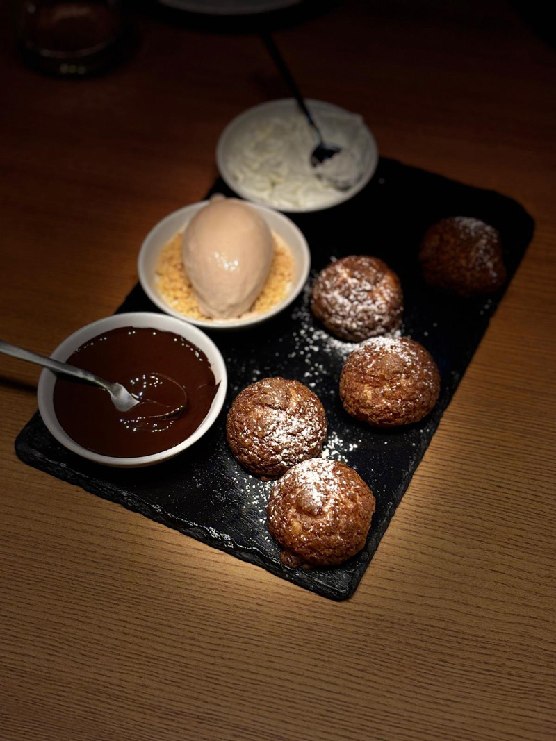 A carta, que o chef descreve como um reflexo das suas memórias e dos seus lugares, faz desfilar sabores arrojados e reconfortantes. Entre os destaques, o entrecôte Café Paris e a picanha wagyu com linguini trufado representam o melhor da secção carnívora, enquanto o bitoque de lagosta, a picanha de tamboril e o clássico bacalhau à lagareiro elevam a experiência do mar à mesa. Para terminar, há tentações que merecem entrega total: os soufflés em versão XL, as fatias douradas com sorvete e os profiteroles recheados são sugestões difíceis de recusar. Tudo isto harmonizado com uma carta de vinhos e cocktails à altura da criatividade do chef e da sua equipa. Não é por acaso que o restaurante foi galardoado nos World Luxury Restaurant Awards, com distinções que o colocam entre os melhores da Europa e de Portugal.
