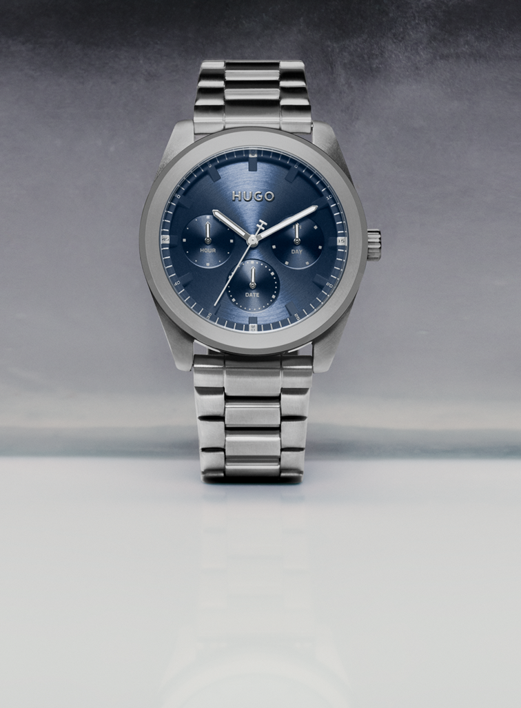 Liderança e Irreverência Para os que preferem liderar em vez de seguir. Estilo moderno, ideal para os que preferem criar tendências. Nos relógios HUGO, encontrarás modelos com um design moderno, minimalista e irreverente que irão completar o teu estilo.
