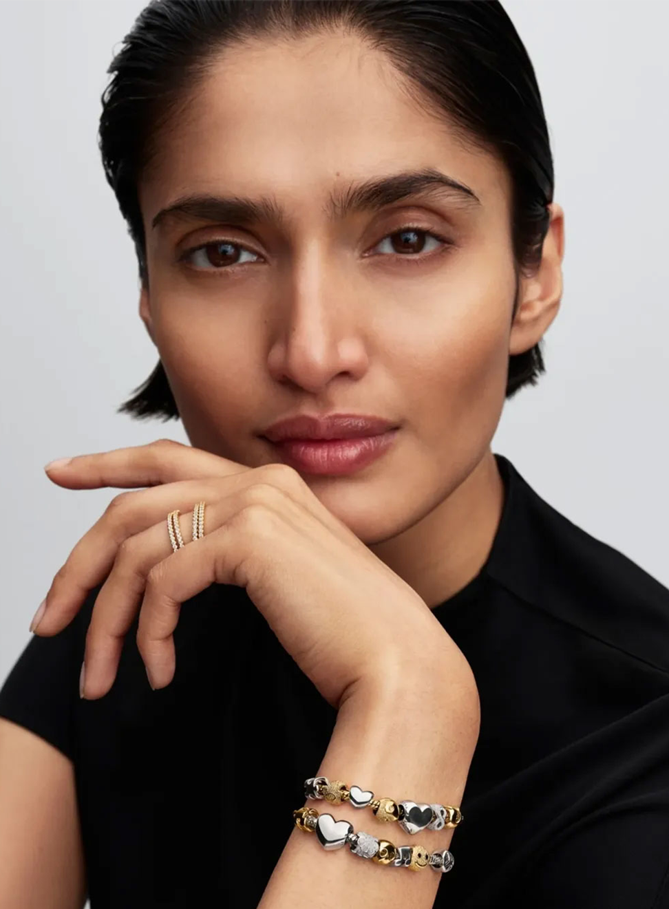 Crie a sua pulseira Pandora personalizada com charms em prata, ouro e materiais exclusivos, escolhendo entre as coleções Pandora Moments, Pandora Signature e Pandora ME.
