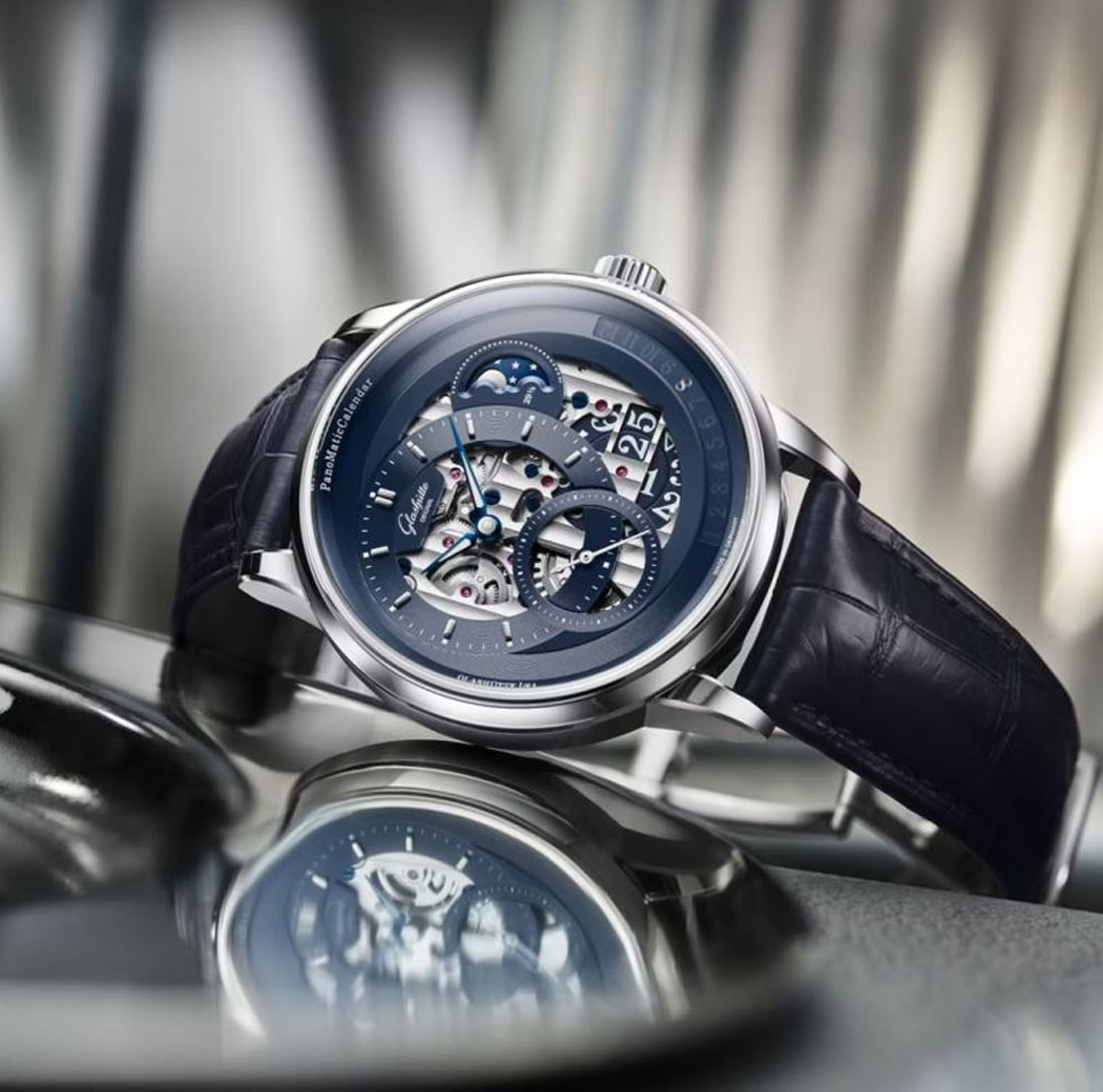 A colecção PanoMaticCalendar recebe uma edição limitada em platina com mostrador azul esqueletizado.