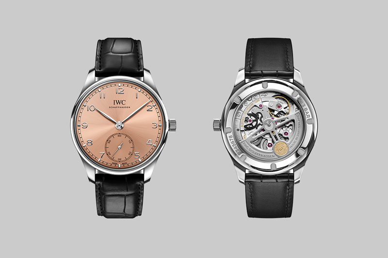 Uma cor algo rara em relojoaria, mas que confere um toque de distinção e elegância, o salmão acaba de chegar ao mostrador do IWC Portugieser 40. Obtida através de um tratamento em ouro rosa e com decoração raio-de-sol, esta tonalidade brilha na face sóbria do mais clássico de todos os Portugieser.