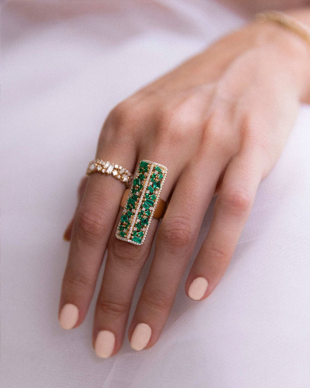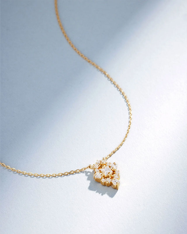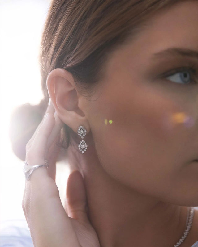Cativada pela sensação de leveza encontrada nas fantasias infantis, Susanne criou formas delicadas com formato de estrela usando ouro de 18 quilates. Os designs são adornados com requintados diamantes e safiras em lapidação princesa, realçando o charme extravagante da coleção.