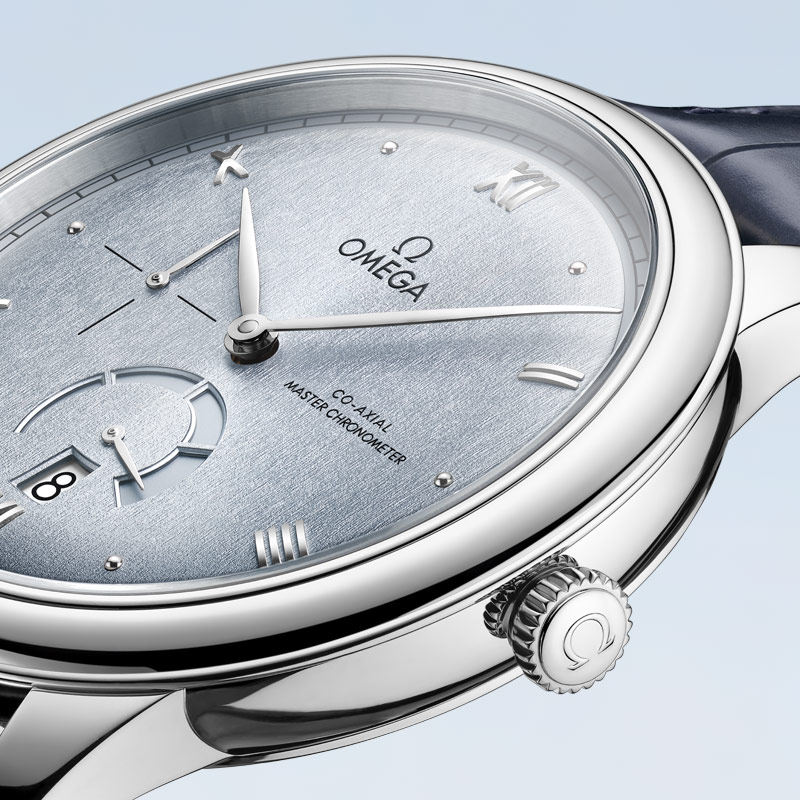 O modelo Reserva de Marcha & Pequenos Segundos do De Ville Prestige foi ampliado de 39,5 mm para 41 mm. O layout do mostrador mantém um indicador de reserva de marcha embutido às 6 horas com uma cruz na exibição dos pequenos segundos às 9 horas. A janela de data está integrada no visor de reserva de marcha na parte inferior do mostrador. O modelo é alimentado pelo calibre Master Chronometer Omega 8810.