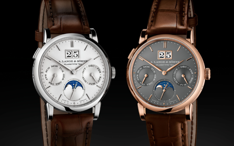 Da A. Lange & Söhne chegam duas propostas que sintetizam a filosofia da Maison saxónica: a contenção elegante de um calendário anual de pulso discreto e a grandiosidade técnica de um tourbillon com calendário perpétuo que brilha literalmente no escuro.