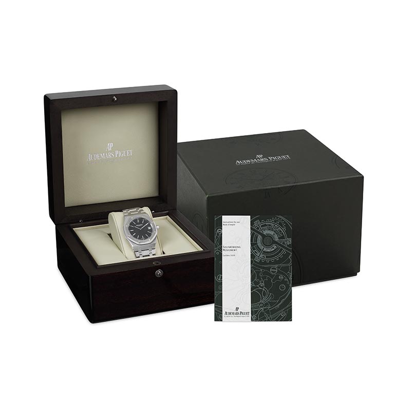 O relógio disponibilizado pela Boutique dos Relógios Plus é um descendente directo do modelo original. Trata-se de um Royal Oak Jumbo pre-owned, de 2005, e destaca-se por ser um dos primeiros a integrar um movimento de manufactura, o calibre 3120. Destaque ainda para o icónico design de Genta, inspirado num capacete de mergulhador vintage, e para o mostrador "Grande Tapisserie" com o logótipo "AP" aplicado na posição das 12 horas, abaixo de "Audemars Piguet" escrito por extenso e "Automatic" escrito por extenso acima da posição das 6 horas.