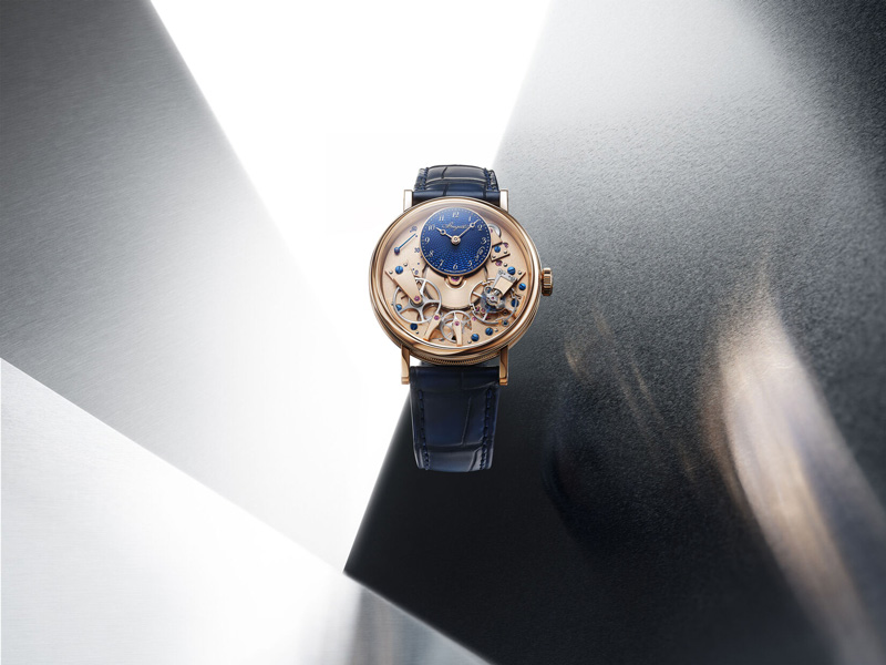 Produzido em ouro Breguet e com acabamentos manuais, posiciona-se como interpretação contemporânea da construção histórica da manufactura.