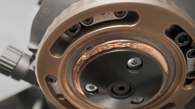 No coração do modelo pulsa o novo calibre manual VS00, uma criação composta por 144 componentes e equipada com 21 rubis. Com uma frequência de 3 Hz (21.600 alternâncias por hora), este movimento proporciona uma impressionante reserva de marcha de 96 horas, alimentada por um único tambor de corda. O balanço integra uma espiral Breguet em Nivachron™, uma liga antimagnética que confere maior resistência a variações de temperatura, choques e campos magnéticos.