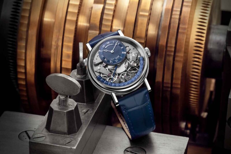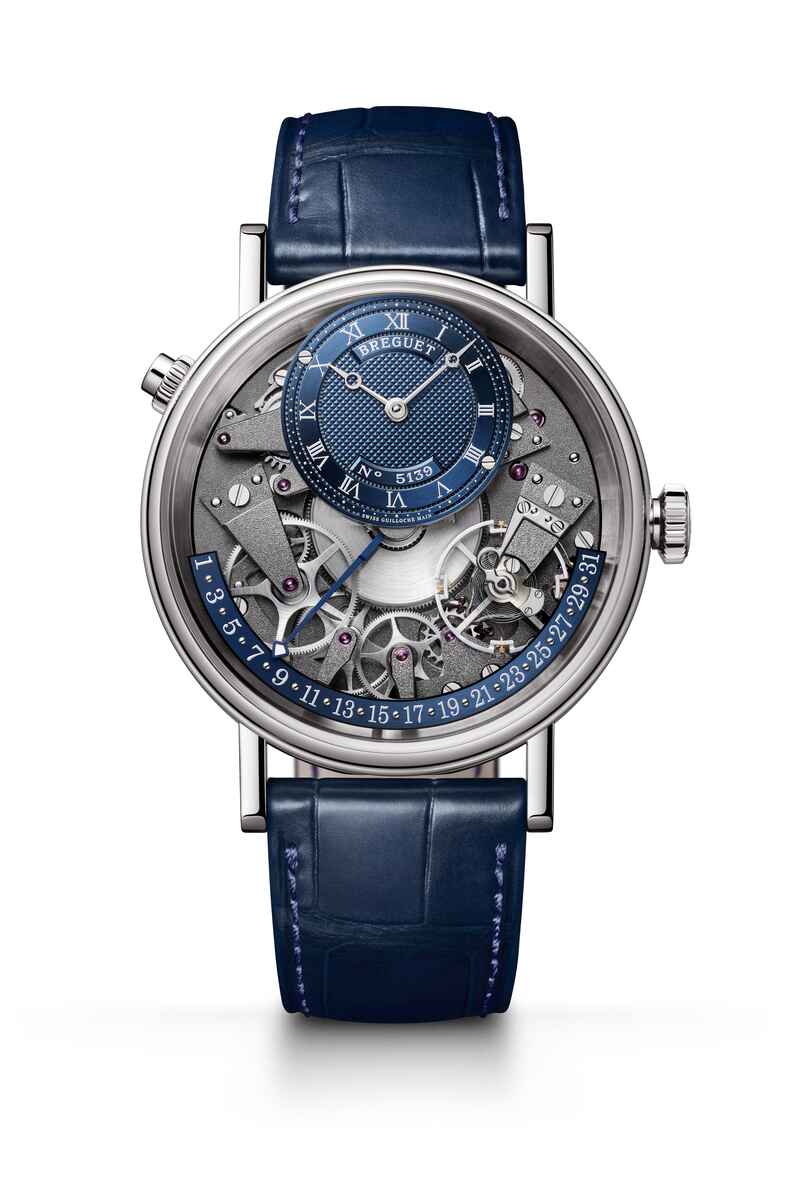 A Breguet apresenta uma variante do icónico Tradition Quantième Rétrograde que se destaca visualmente pelo contraste entre o mostrador azul e o movimento revestido de cinzento antracite. Por outro lado, e à semelhança dos seus antecessores, o Tradition 7597 mergulha nas origens da Maison, apresentando componentes inspirados nos relógios criados por Abraham-Louis Breguet e uma arquitectura simétrica do seu calibre.