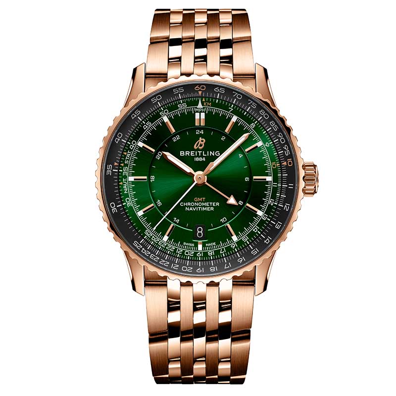 Tendo iniciado a redefinição da linha Navitimer em 2022 com o cronógrafo original, a Breitling continua agora essa modernização com uma versão simplificada do GMT com 41 mm. Os novos modelos apresentam um sentido de modernidade, patente na escolha de cores e acabamento. Preto, prata ou azul gelo completam esta série proposta em aço com uma quarta opção em ouro vermelho e um mostrador verde vibrante.