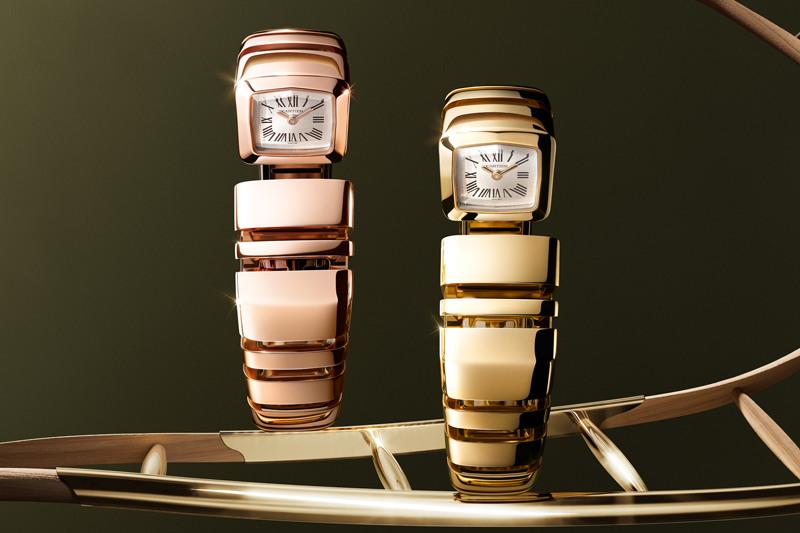A atenção aos detalhes é evidente nos elementos e nuances contrastantes, como o acabamento dourado finamente granulado no mostrador do modelo em ouro e os algarismos romanos revestidos a ródio nas versões em platina. Todos os modelos apresentam uma bracelete em pele de crocodilo vermelha e são alimentados pelo movimento de corda manual 430 MC, um dos movimentos mais finos da Cartier.