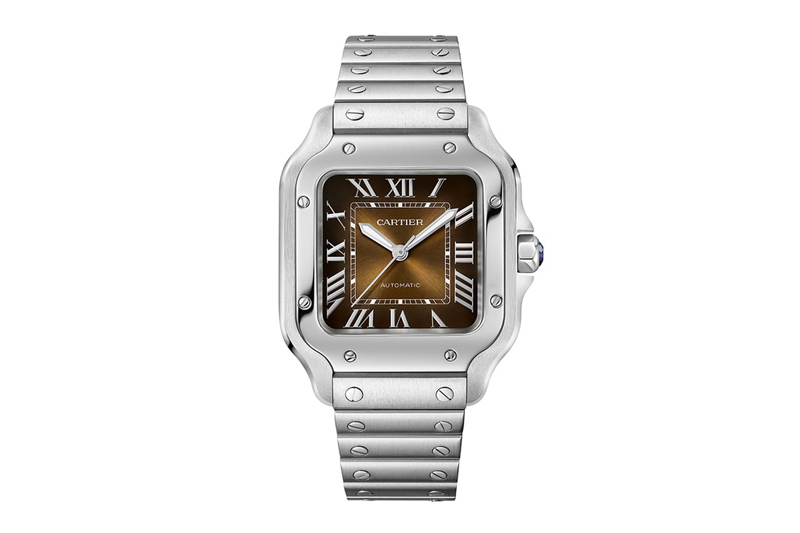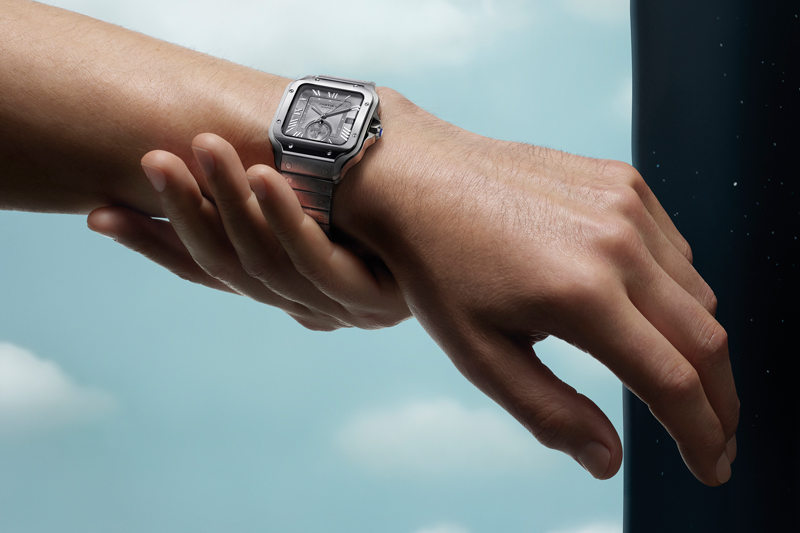 A segunda adição é o arrojado relógio Santos de Cartier Dual Time, concebido para os aventureiros modernos. Este relógio permite o acompanhamento de dois fusos horários em simultâneo, refletindo a conquista da distância por Santos-Dumont. Com linhas cónicas e uma caixa em aço, este relógio exala elegância, complementada por características práticas, tais como braceletes intercambiáveis em aço ou pele e ajuste de tamanho sem ferramentas.