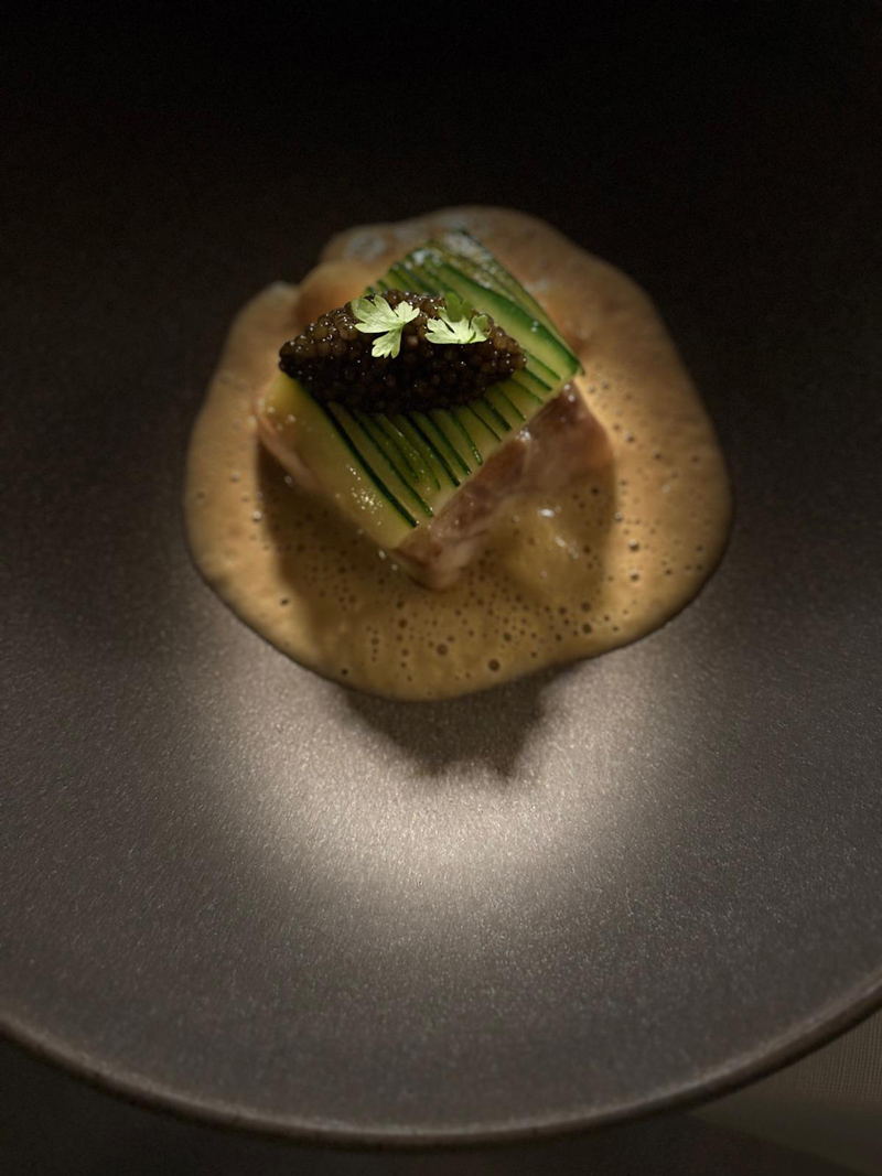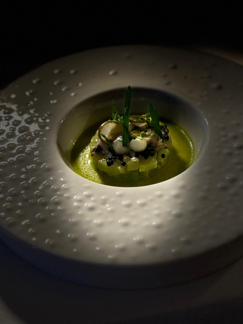 Para esta experiência sensorial única, o menu, composto por oito momentos, foi harmonizado com os champanhes Henri Giraud da seguinte forma: