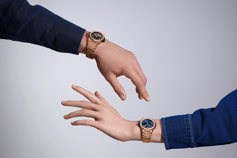 Os seis novos modelos do Big Bang Integrated Time Only apresentam caixas e braceletes integradas feitas de vários materiais. Duas versões são apresentadas em titânio escovado com mostradores pretos ou azuis, seguidas de duas edições em King Gold com as mesmas opções de mostrador. O mostrador, em aço ferromagnético macio, assegura a proteção do movimento contra os campos magnéticos, preservando a sua precisão cronométrica. Equipado com o novo movimento HUB1115, dotado de uma massa oscilante renovada e de uma espiral mais forte, a reserva de marcha estende-se até 48 horas.