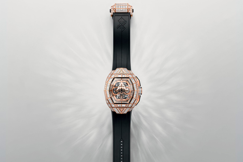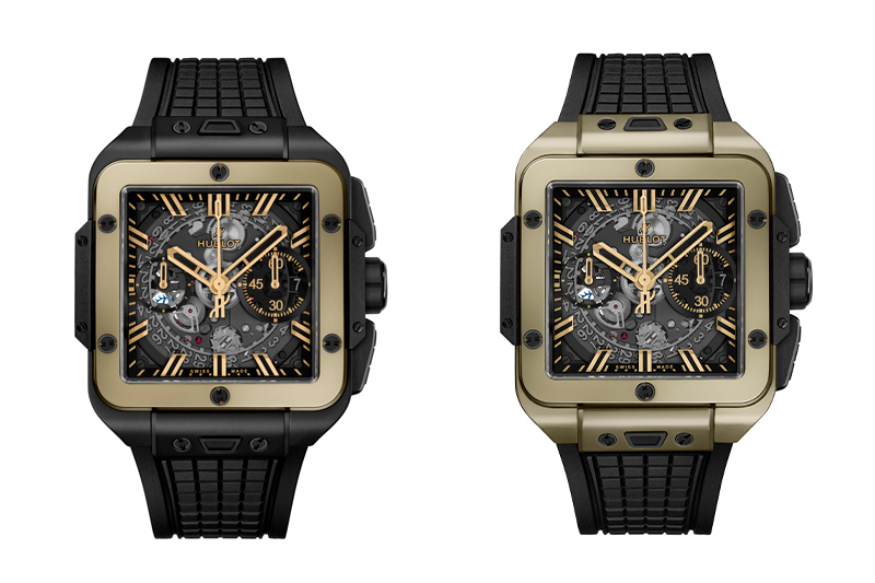Estes novos modelos Square Bang Unico oferecem aos colecionadores uma opção arrojada mas refinada, com ligeiras variações nas suas caixas. Um apresenta uma caixa de cerâmica preta microjateada com uma luneta Magic Gold, enquanto o outro é inteiramente fabricado em Magic Gold de 18K. A versão completa em Magic Gold está limitada a apenas 200 peças, acrescentando um toque de exclusividade a esta coleção inovadora.