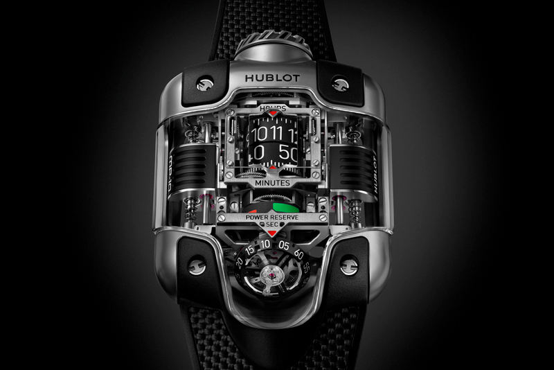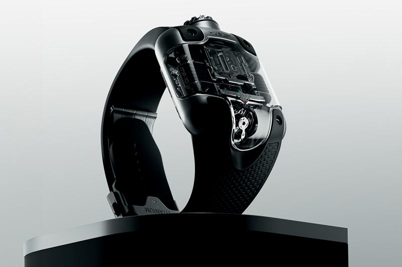 O MP-13 Tourbillon Bi-Axis Retrograde apresenta um mostrador preto mate de 44 mm e oferece uma forma alternativa de controlar o tempo, com a escala de minutos exibida acima dos índices. Limitado a apenas 50 peças, este relógio é movido pelo movimento de corda manual MHUB6200, com reserva de marcha de 90 horas. A caixa em fibra de carbono e Texalium preto oferecem uma resistência à água de 30 m e, combinadas com braceletes de borracha preta, são leves e confortáveis.