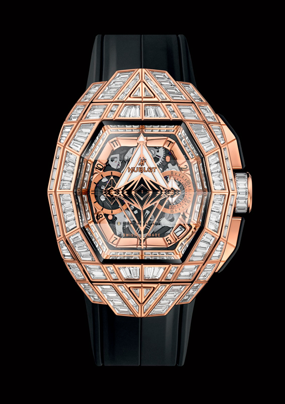 O trabalho tridimensional da luneta, com uma espessura generosa, lados côncavos e superfície abobadada, mostra a atenção meticulosa aos detalhes. A utilização do Magic Gold pela Hublot permite uma luneta maior e mais polida, melhorando o apelo visual do relógio sem comprometer a durabilidade.