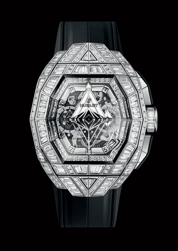 O relógio também vem em duas outras variações: Sang Bleu High Jewellery. Fabricados em King Gold 18 quilates ou ouro branco 18 quilates, cada relógio é engastado com 243 diamantes no total, o que equivale a 13,6 quilates. Diamantes lapidados em baguete adornam a caixa, a luneta, o mostrador e o fecho nas pulseiras de borracha preta lisa.