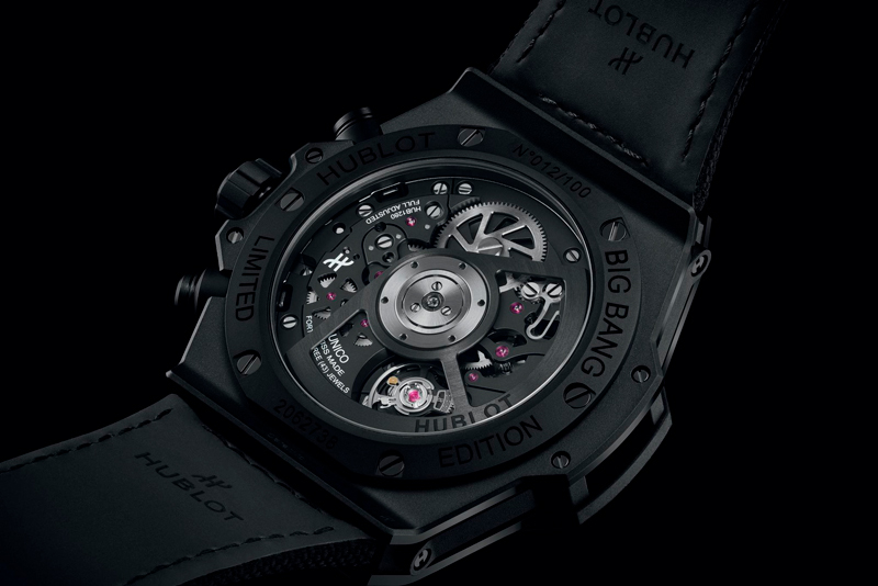Cada detalhe, incluindo índices, contadores, ponteiros e a bracelete de borracha integrada, reflete a cor exata da cerâmica. A bracelete possui o sistema "One-Click" patenteado pela Hublot para facilitar as mudanças sem ferramentas. Limitada a 250 exemplares, esta série inclui o calibre Unico Cronógrafo de manufatura, que oferece uma reserva de marcha de três dias e apresenta a arquitetura esqueletizada caraterística da Hublot na icónica caixa do Big Bang, com 42 mm de diâmetro. Este relógio também está disponível num tom verde escuro, Big Bang Unico Dark Green Ceramic.