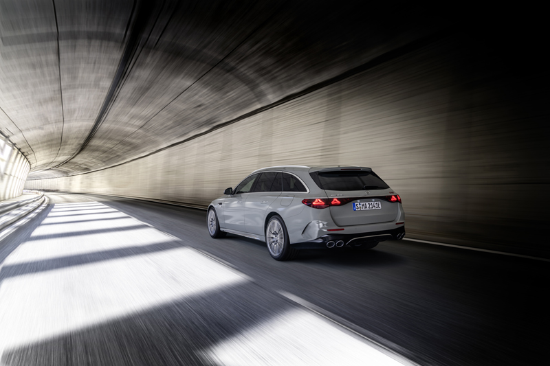 Destaque ainda para os farolins traseiros em LED, planos e ligados horizontalmente, com a assinatura da Estrela Mercedes, para o spoiler AMG na tampa da bagageira (limousine) e o pára-choques traseiro AMG com difusor e os revestimentos redondos das duas duplas ponteiras nos lados esquerdo e direito.