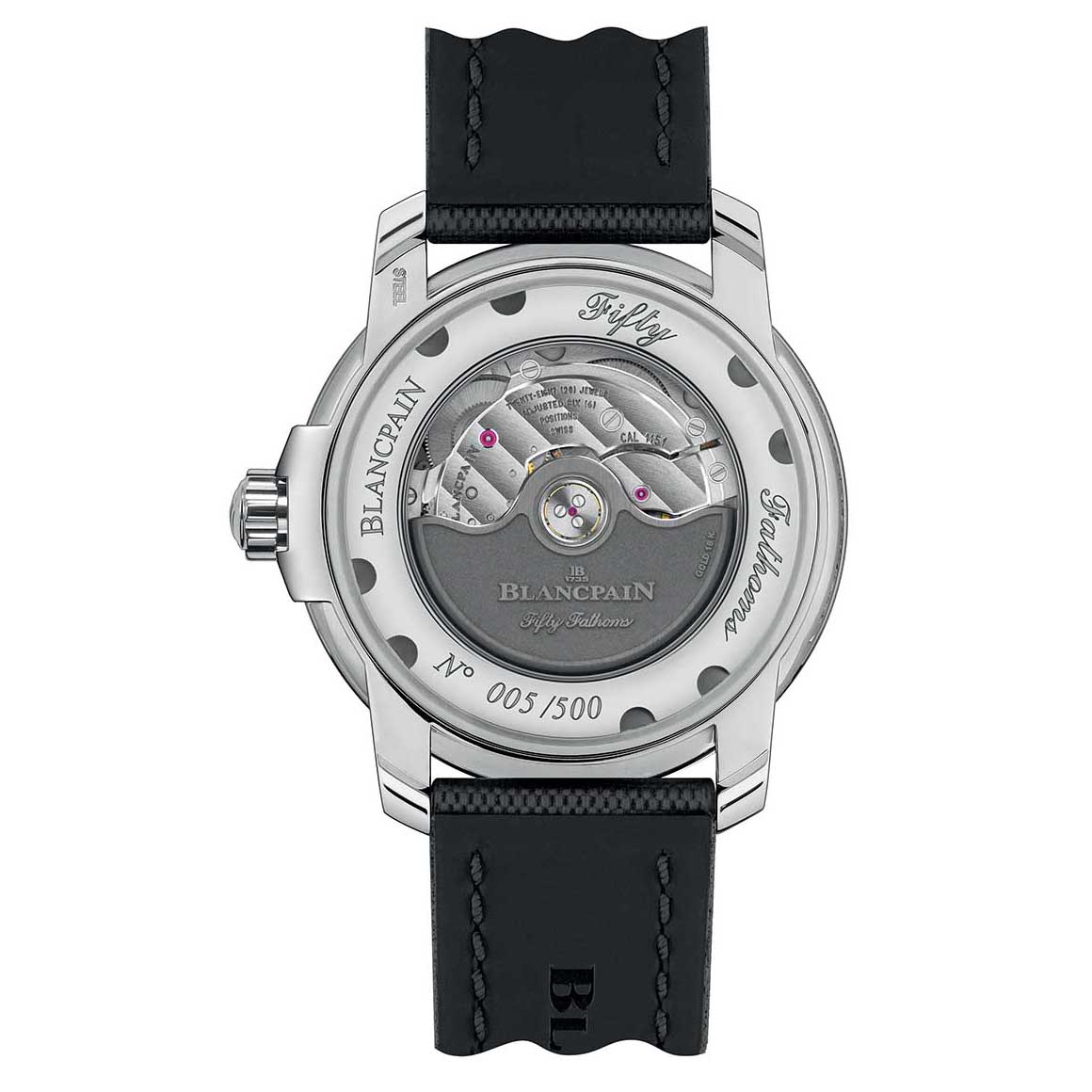 O novo Fifty Fathoms surge equipado com o calibre de manufactura automático 1151, com quatro dias de reserva de marcha, graças a dois tambores de corda acoplados. Emoldurado por uma caixa de 40 mm em aço, o movimento e o rotor de ouro com revestimento NAC (uma liga de platina) são visíveis através do fundo em vidro de safira. Limitado a 500 peças, este relógio oferece três hipóteses de bracelete: NATO, tecido náutico ou aço.