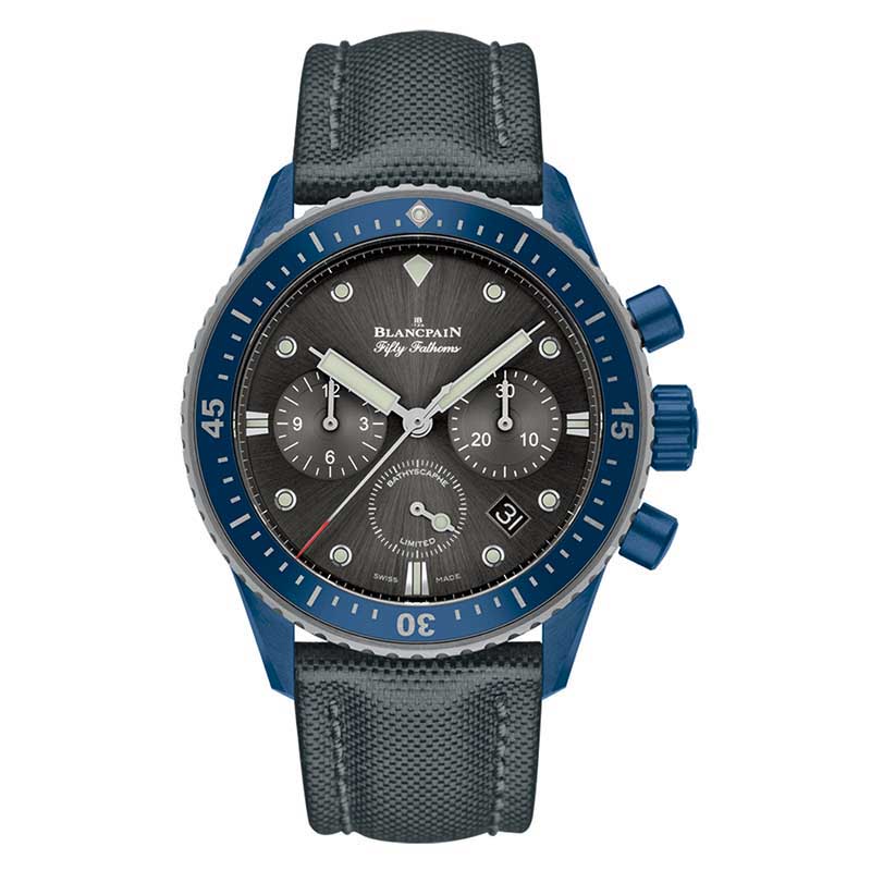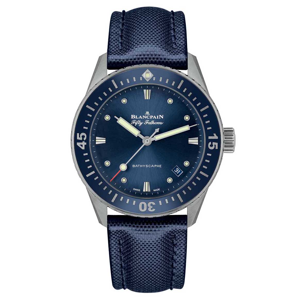 Além do Tributo ao Fifty Fathoms MIL-SPEC, este ano, a Blancpain regressa ao mítico Bathyscaphe para equipar este modelo com uma melhoria técnica e um novo tamanho de caixa: 38 mm e uma luneta em cerâmica azul com marcadores das horas em Liquidmetal.