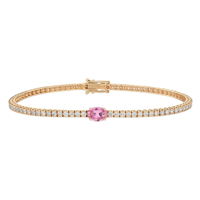 Pulseira Tennis Ouro Rosa, Diamantes E Safira Rosa Oval