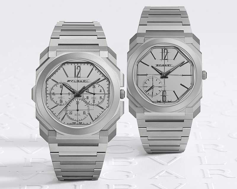 A Bulgari celebra o 10.º aniversário da icónica colecção Octo Finissimo com um par de edições limitadas que homenageiam, literalmente, o design original. Os novos Octo Finissimo Cronógrafo GMT 10th Anniversary e Octo Finissimo Automático 10th Anniversary apresentam mostradores de “esboço a lápis” que reproduzem os desenhos iniciais de ambos os modelos desenhados por Fabrizio Buonamass Stigliani, chefe de design da divisão de relojoaria da Bulgari. Tal como acontece com os modelos padrão, o mostrador dos novos relógios apresenta-se em titânio jateado, mas, ao contrário dos antecessores, este é impresso com linhas em preto e cinzento que reproduzem os desenhos de Buonamassa.